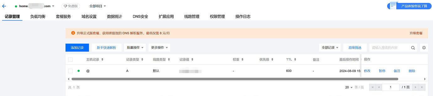 云解析DNS页面,检查记录值是否被更新